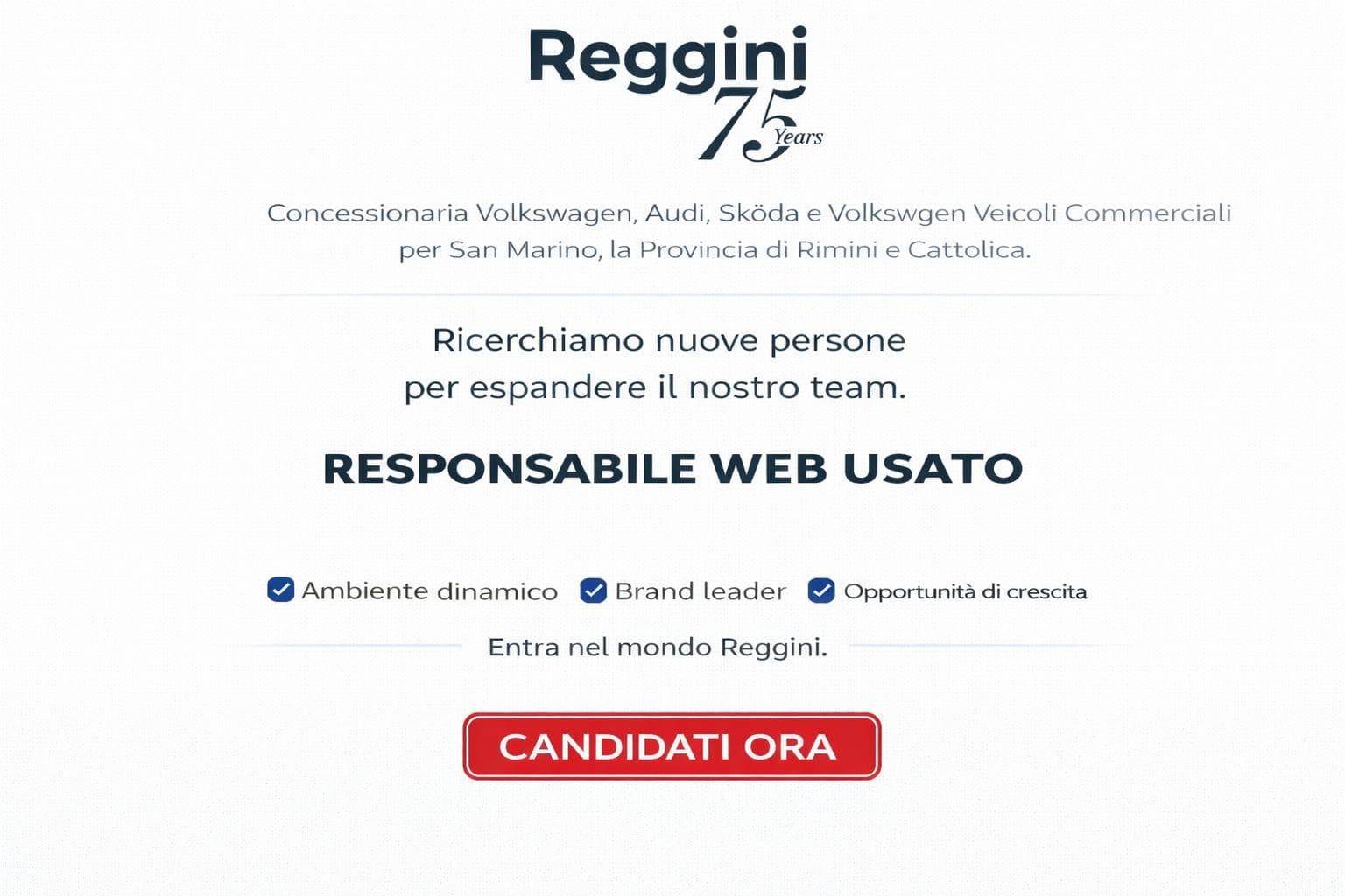 Gruppo Reggini, partner ufficiale dei brand Volkswagen, Audi e Skoda, ricerca per la propria sede di San Marino e Rimini una figura dinamica da inserire nel team Vendite Usato.