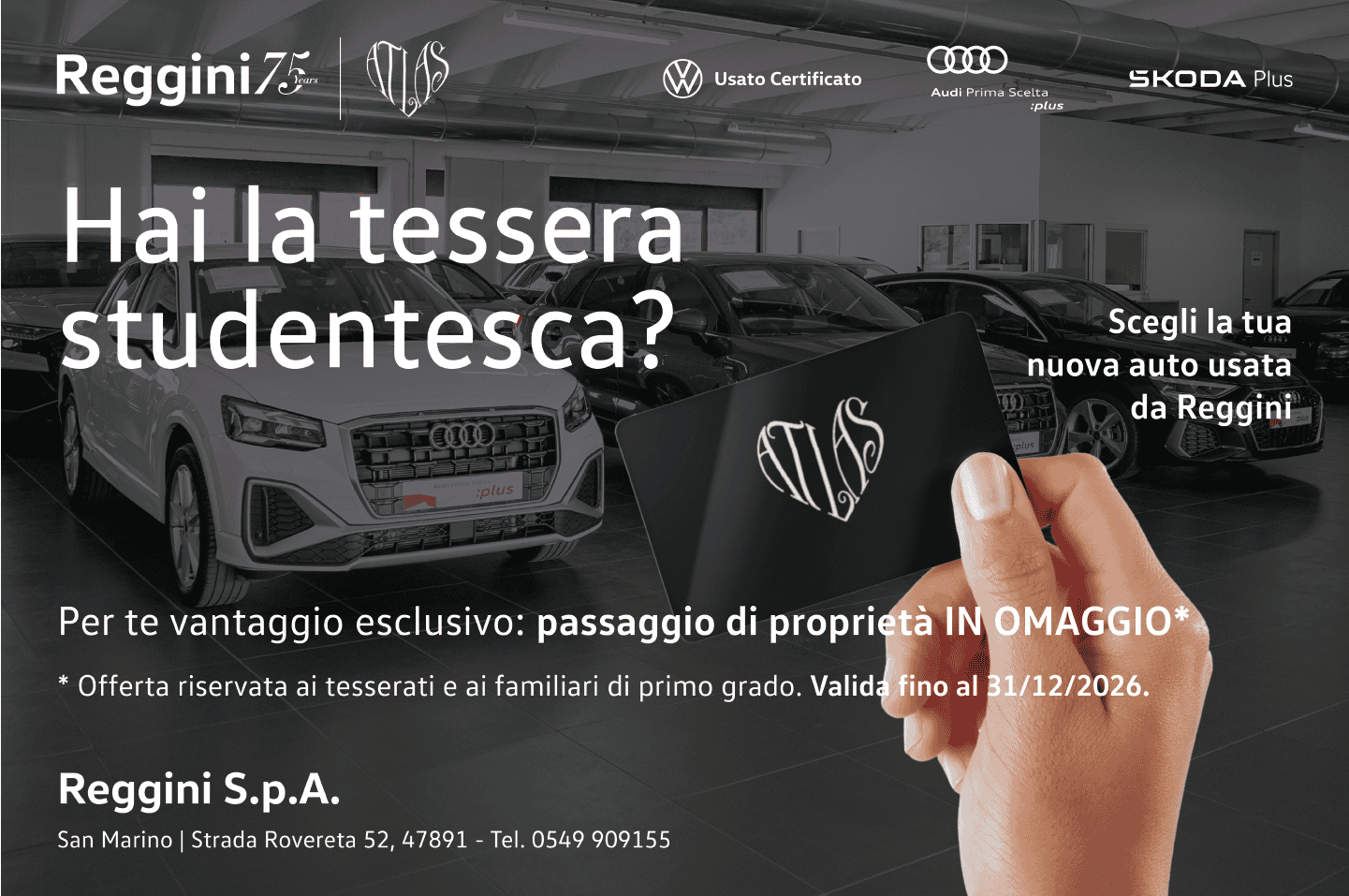Siamo felici di annunciare la nuova convenzione tra Reggini e l’Associazione Studentesca Atlas San Marino, una collaborazione che nasce con l’obiettivo di sostenere i giovani e rafforzare il legame con il territorio.