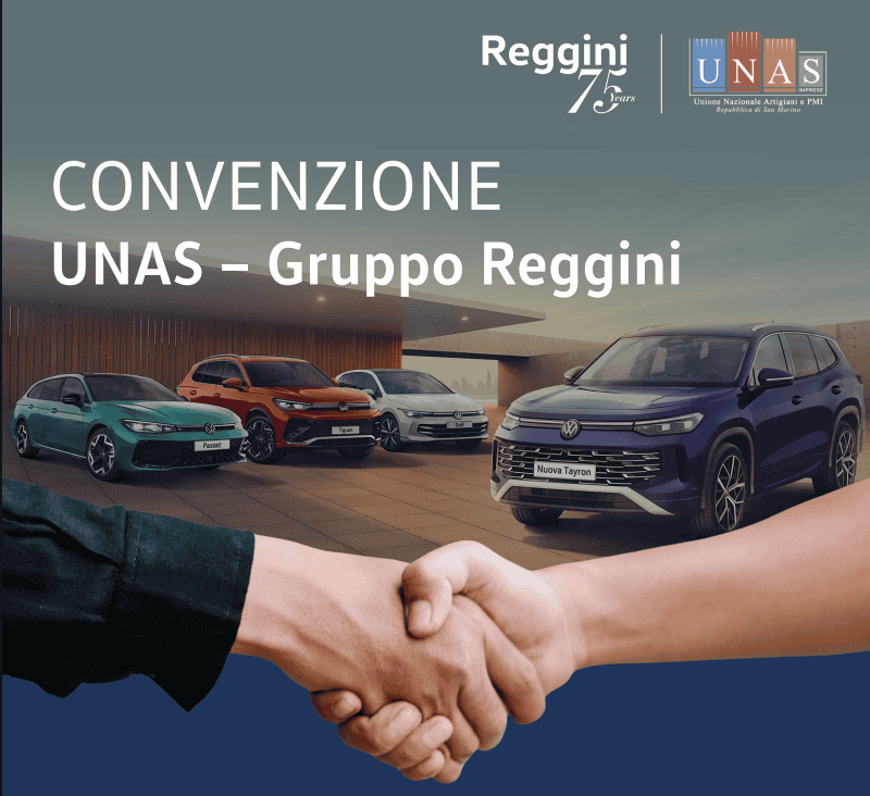 La concessionaria Reggini ospiterà giovedì 4 dicembre 2025, dalle 18:00 alle 19:30, un evento speciale dedicato agli associati UNAS – Unione Nazionale Artigiani Sammarinesi, pensato per presentare i servizi riservati alle imprese e le ultime innovazioni legate alla gamma Volkswagen.